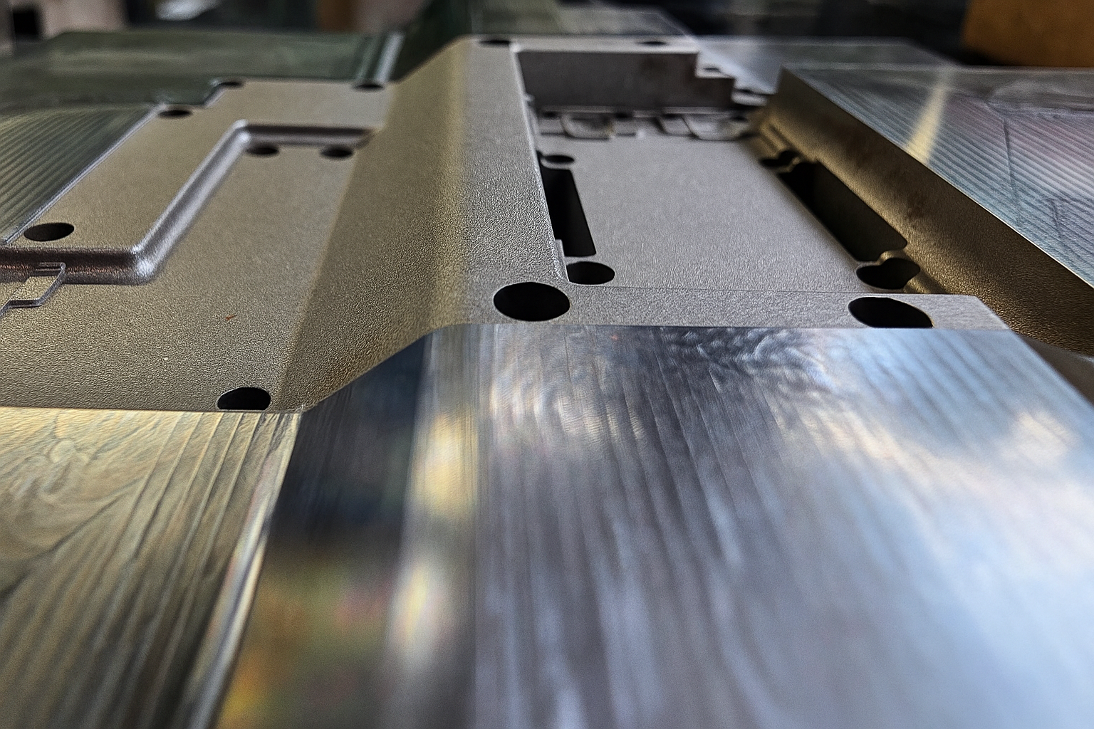 Gli acciai al carbonio comunemente impiegati nei nostri stampi sono temprati a cuore per durezze oltre i 50 HRC con lo scopo di garantire durate eccellenti delle attrezzature e alta qualità negli articoli plastici prodotti medianti esse. La qualità degli accoppiamenti stampo ottenuta mediante tecniche di lavorazione opportune nelle zone di chiusura permette di evitare la formazione di bave.